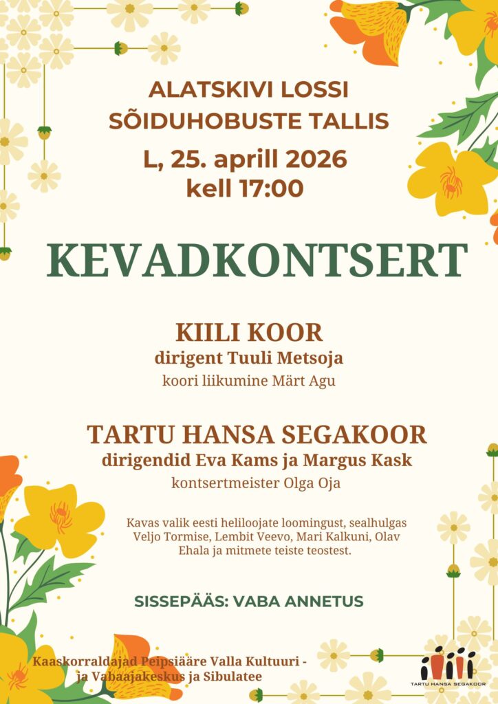 Tartu Hansa Segakoori 14. hooaja esimene kooriproov 10.09.2025 kell 17.30 Poska Gümnaasiumis Posted on 10. sept. 2025 by admin Posted in Uncategorized